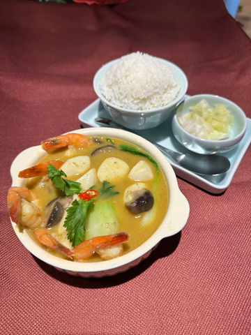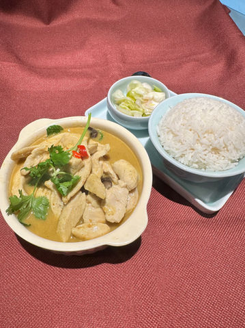 Signature Oriental curry - After blending spices of Oriental territories, a spicy but creamy curry containing deep aromas was found. Served with boiled jasmine rice and seasonal vegetables.